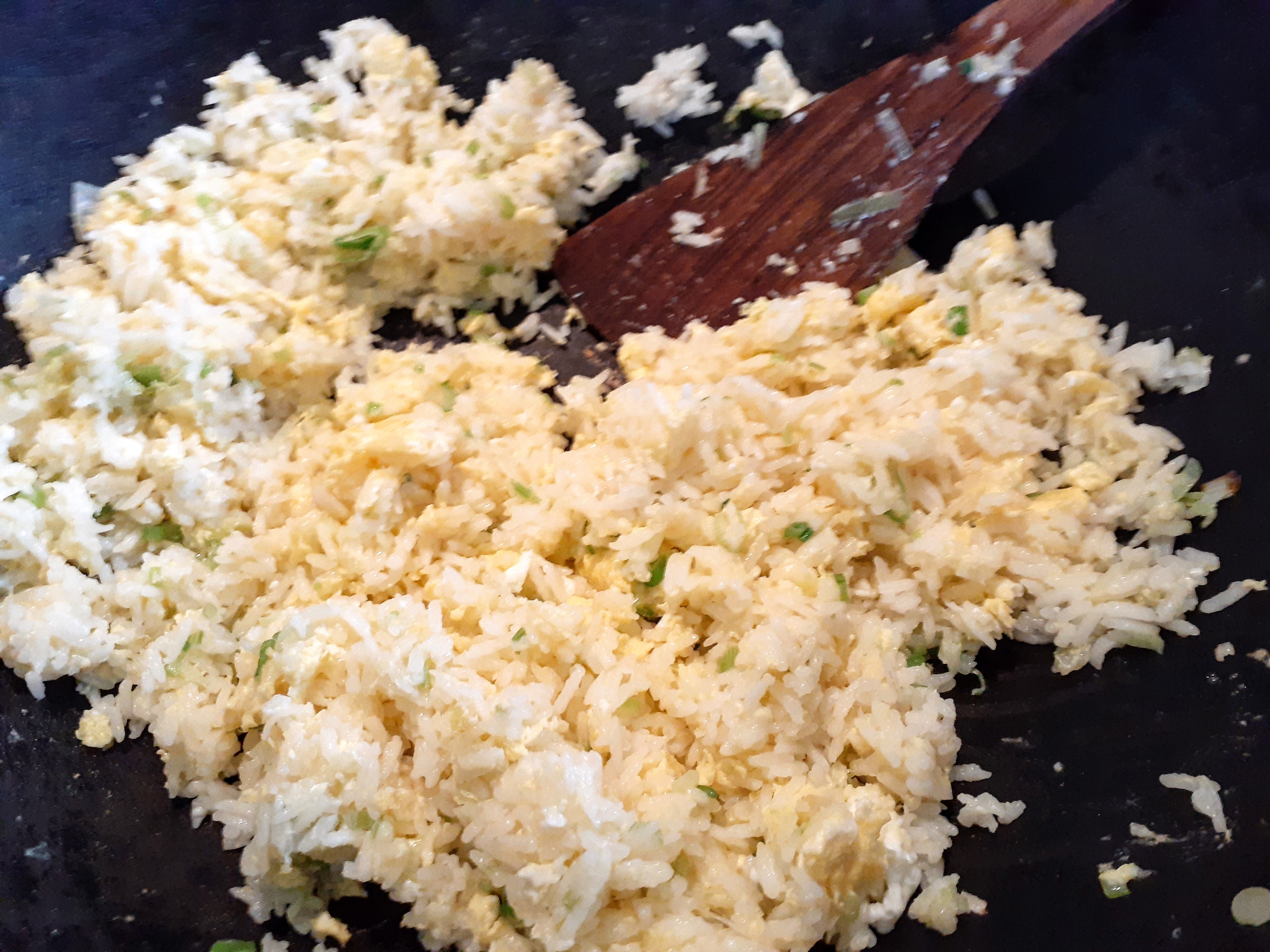 - Keep medium or high heat when stir-frying the rice. If you have a single-handle wok, you can feel when the rice’s weight gets lighter by shaking the wok. That is the sign that the rice was stir-fried properly.
