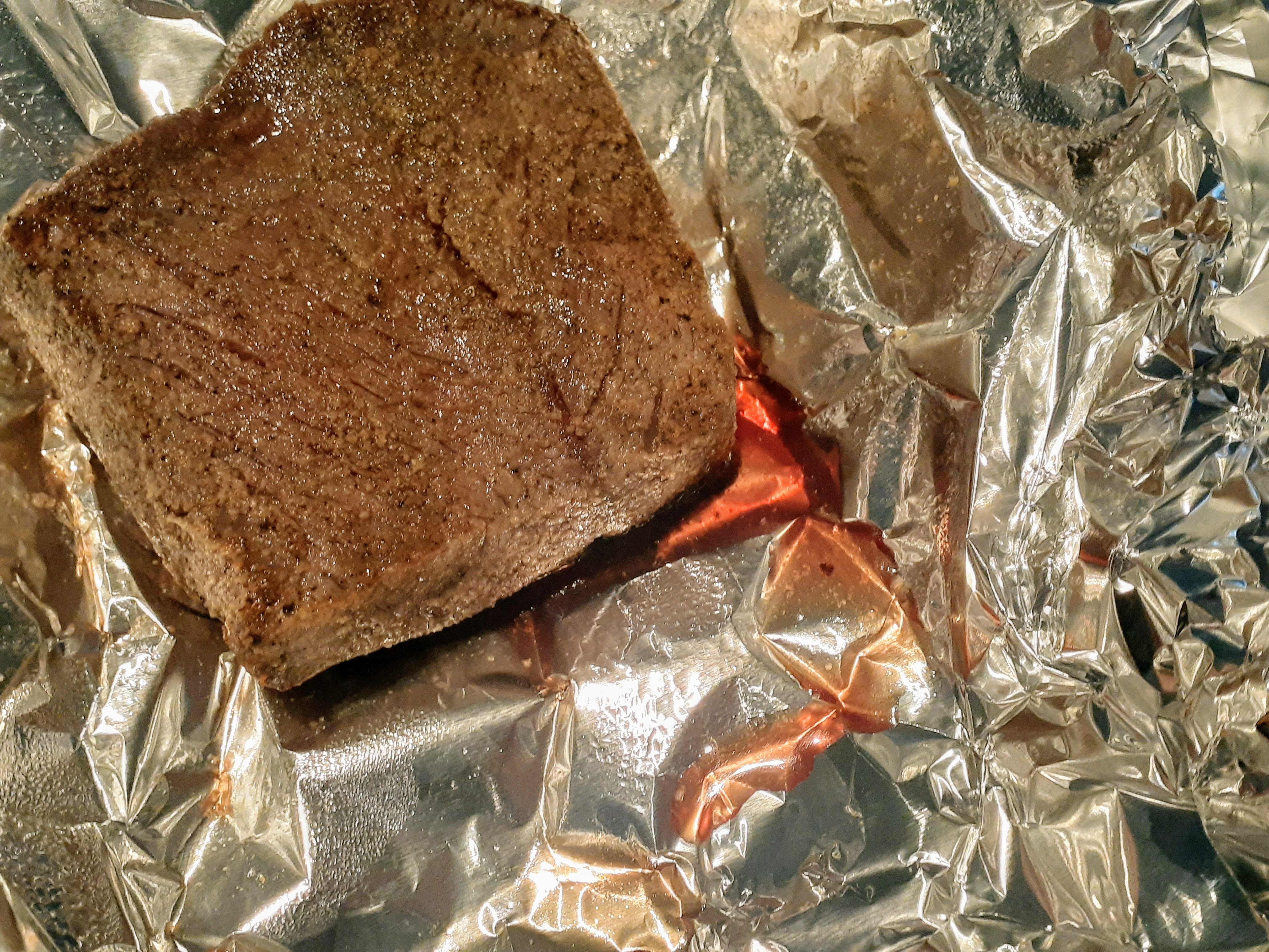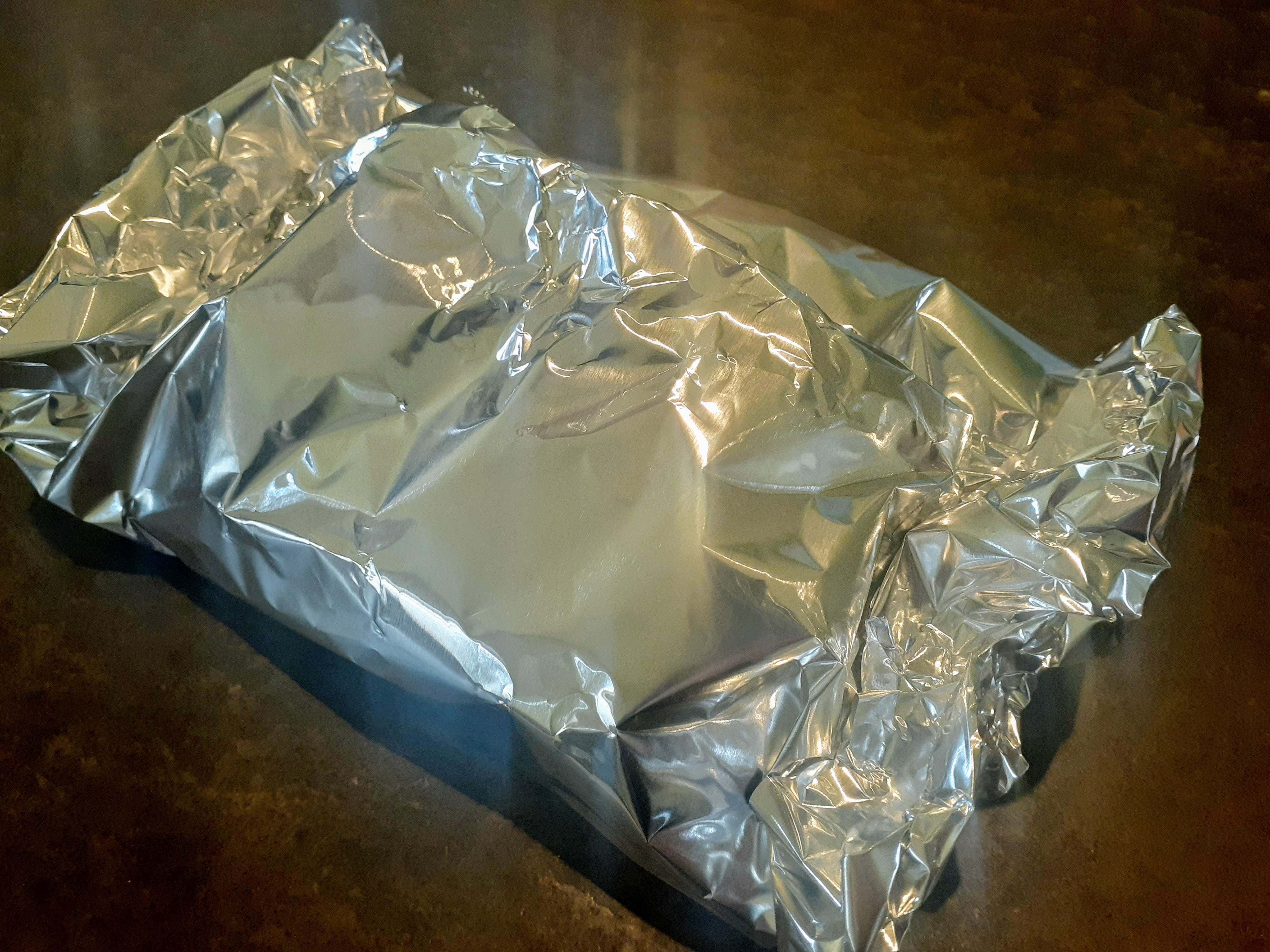 6. Take the beef off the heat, wrap it with doubled aluminium foil