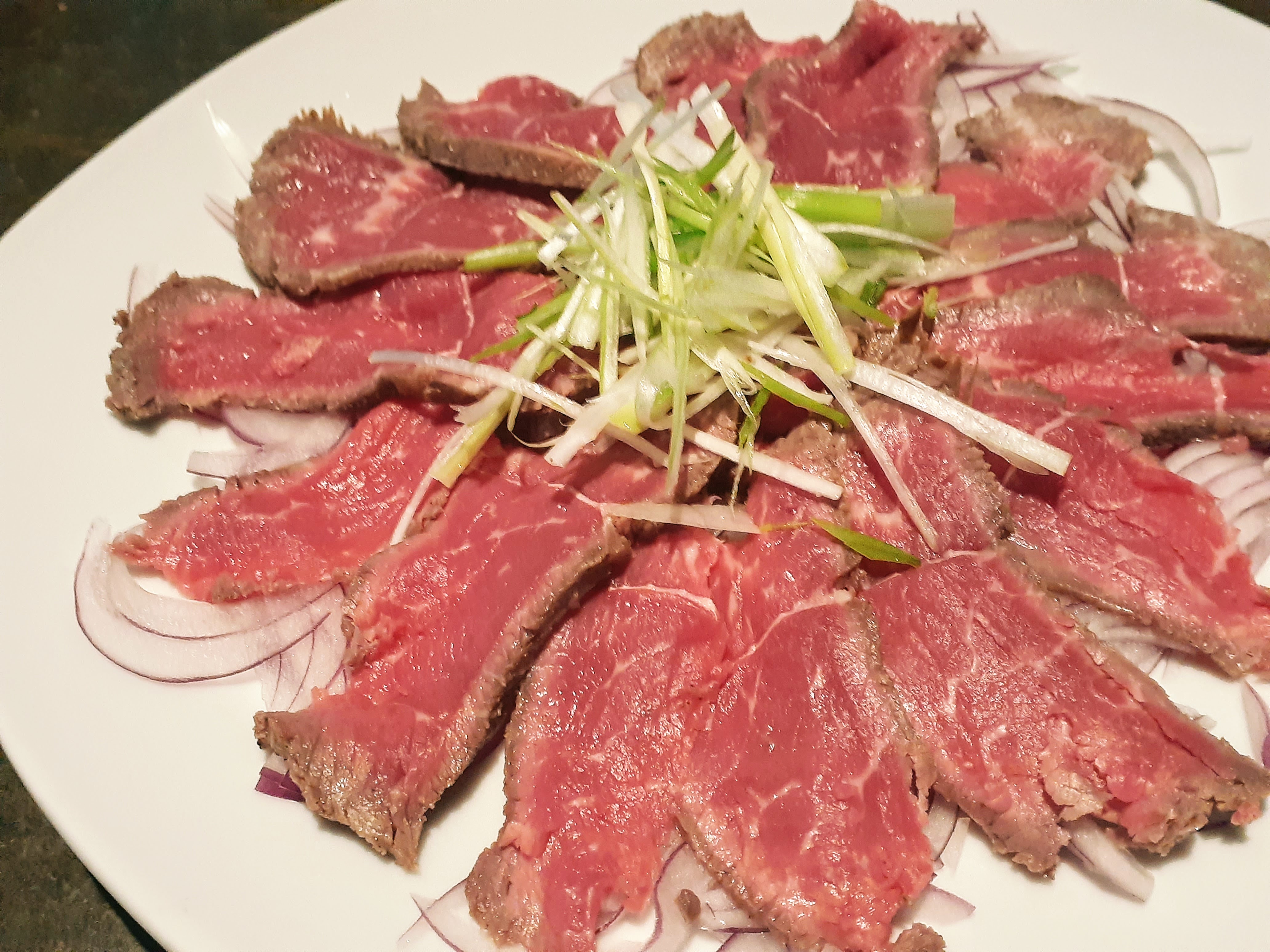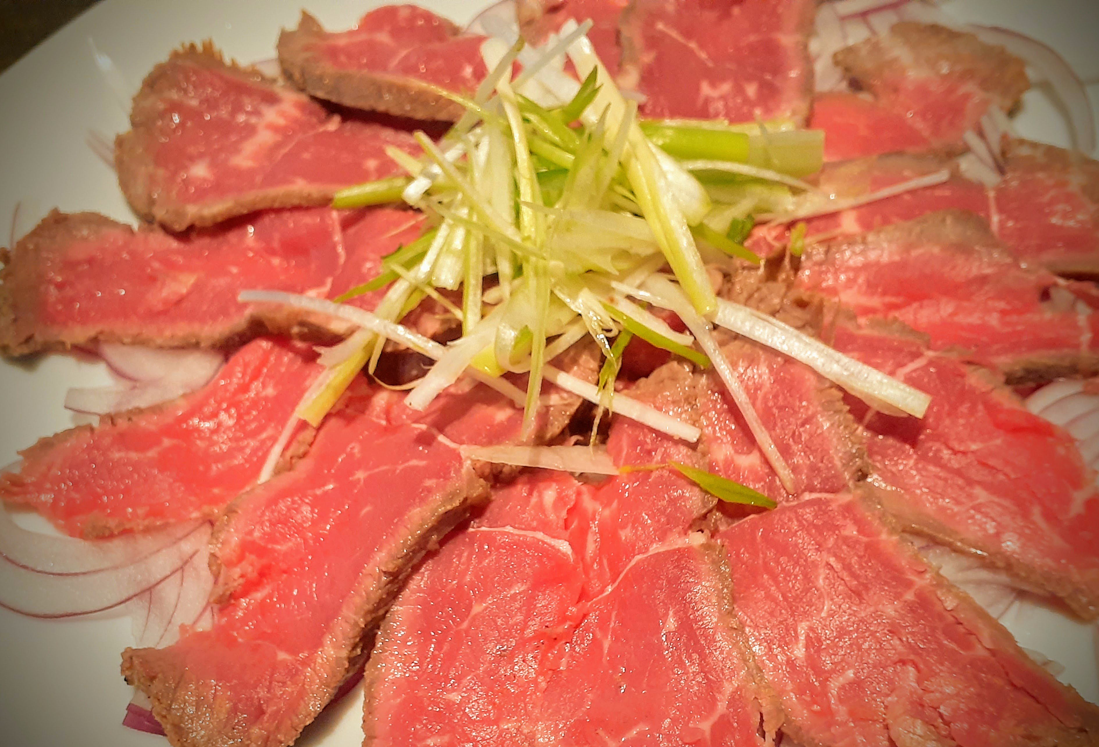 Today, I’d like to share my recipe for seared beef with an apple sauce.