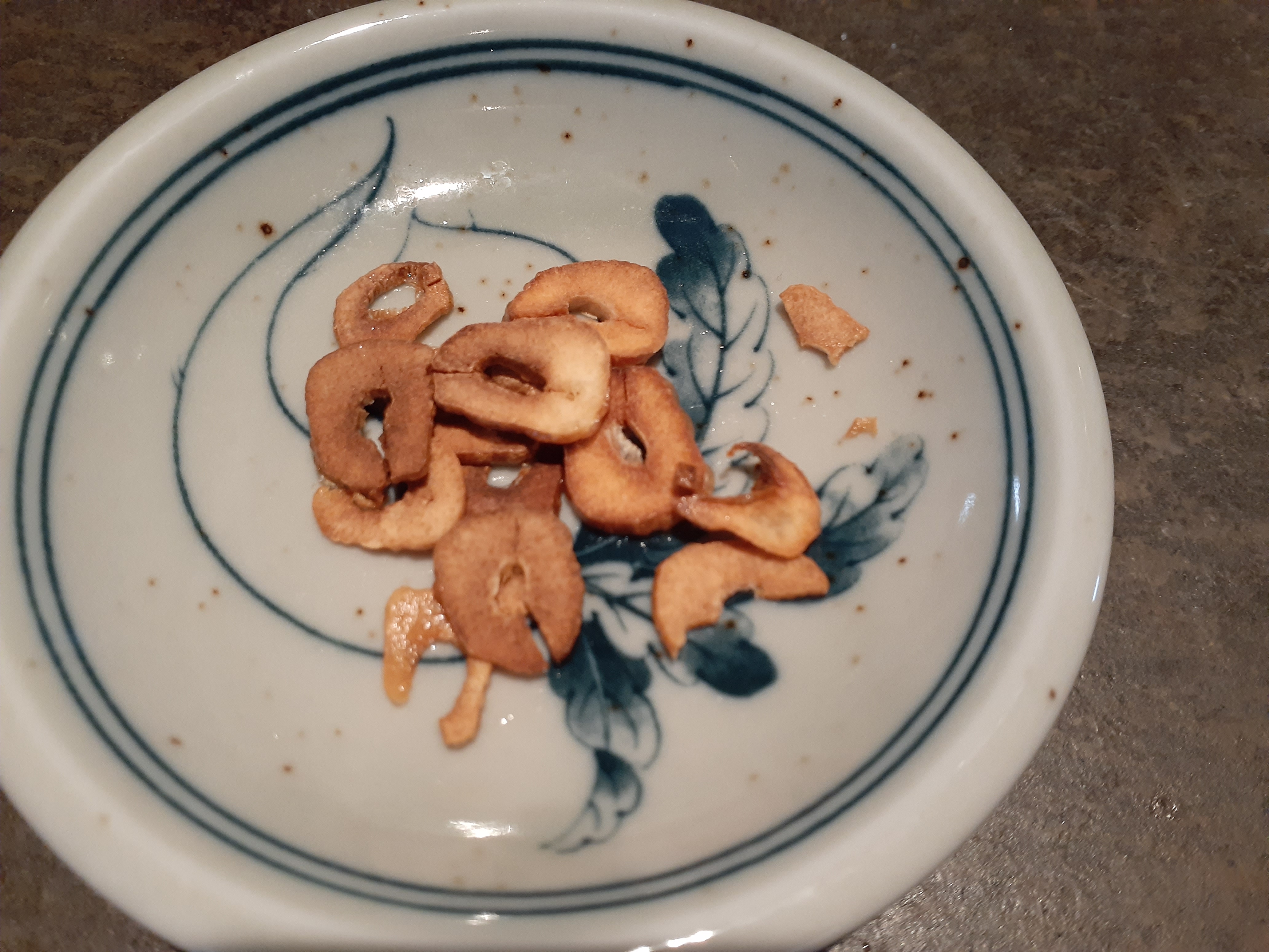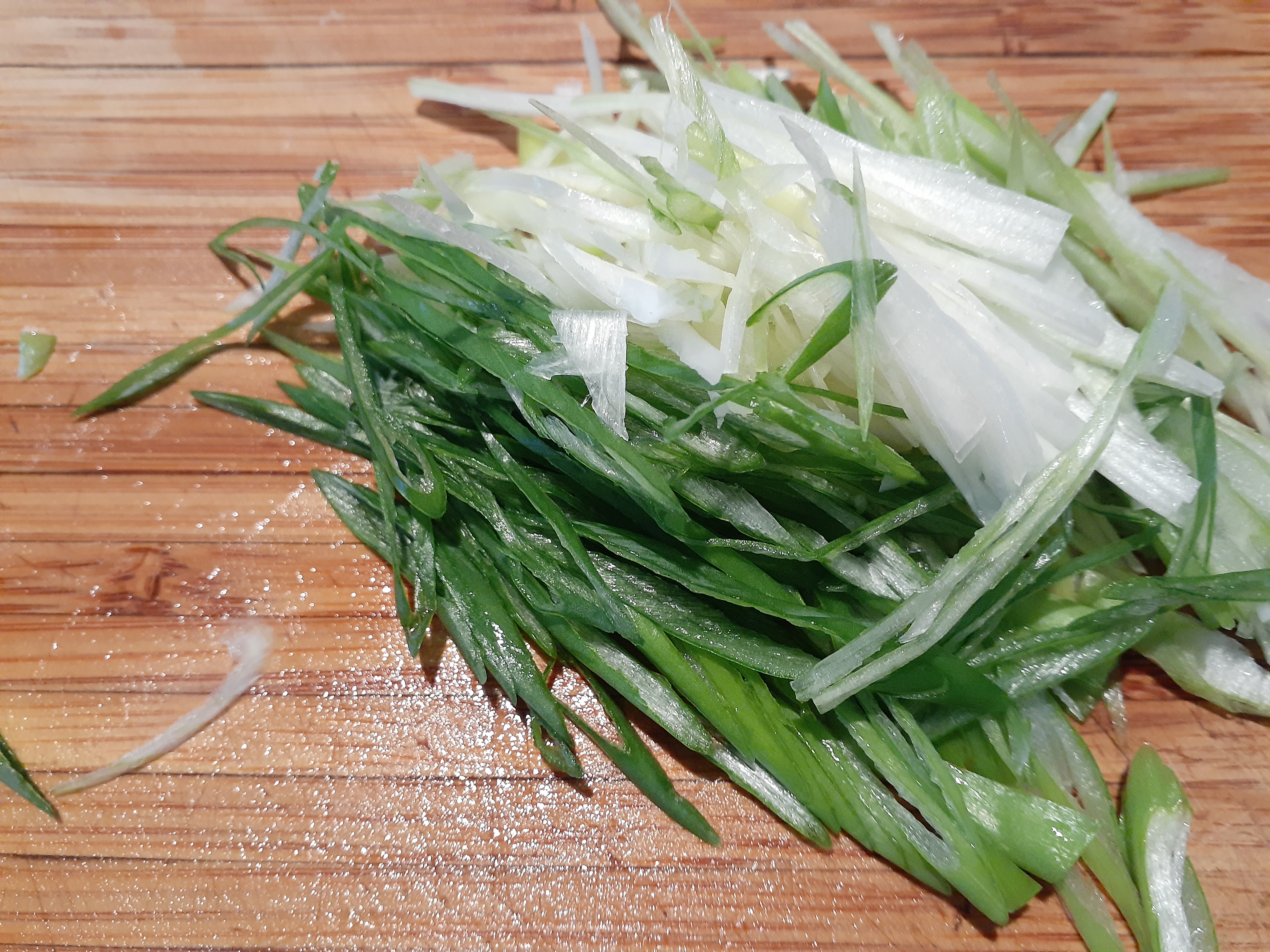 1. Heat a tablespoon of sesame oil in a frying pan, cook the sliced garlic on a low heat until they get coloured, and take them out.