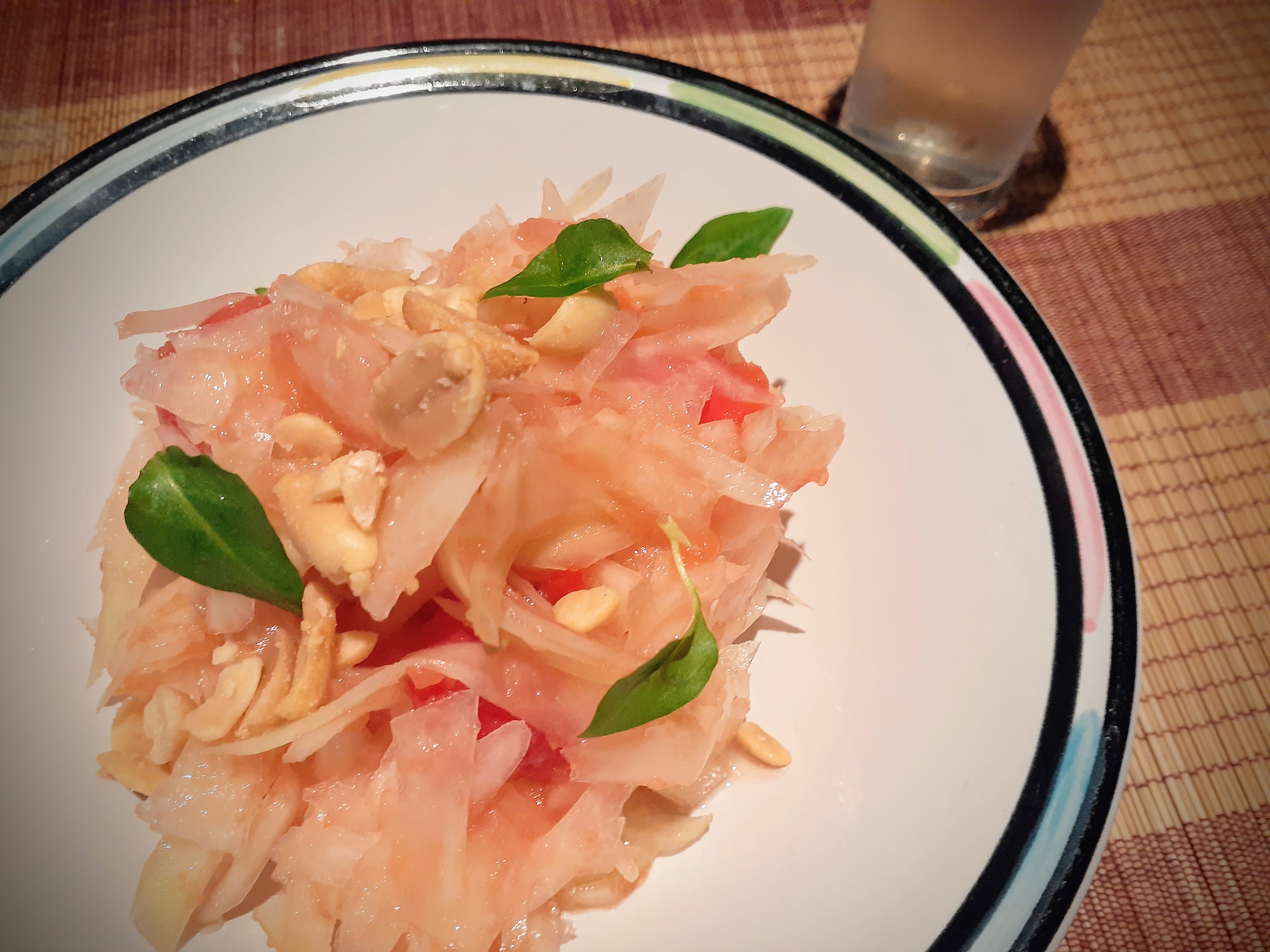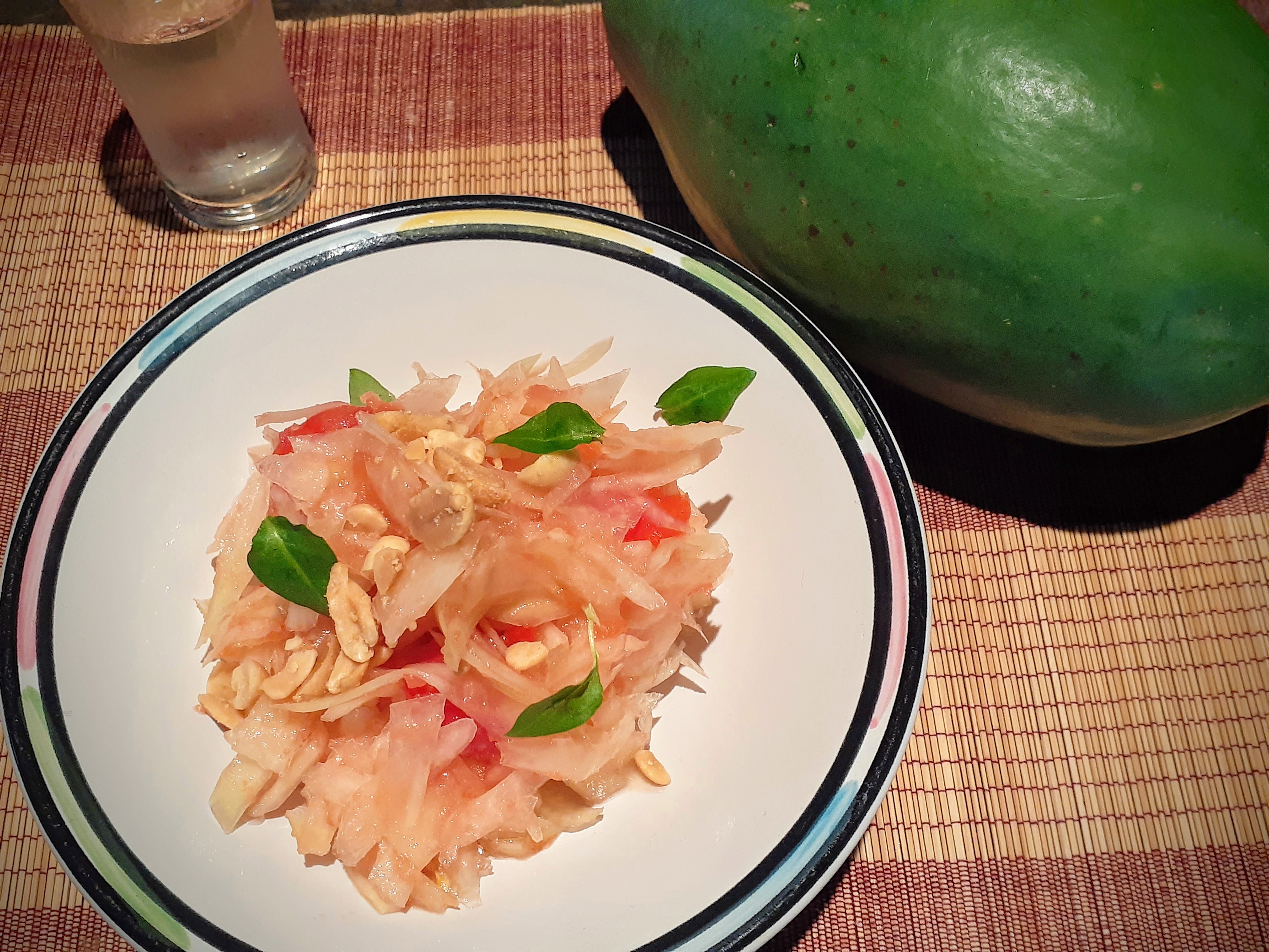 Thai green papaya salad (Som Tum) is one of our favourite dishes. When we go to Thailand, we love to eat green papaya salad from the night market.
