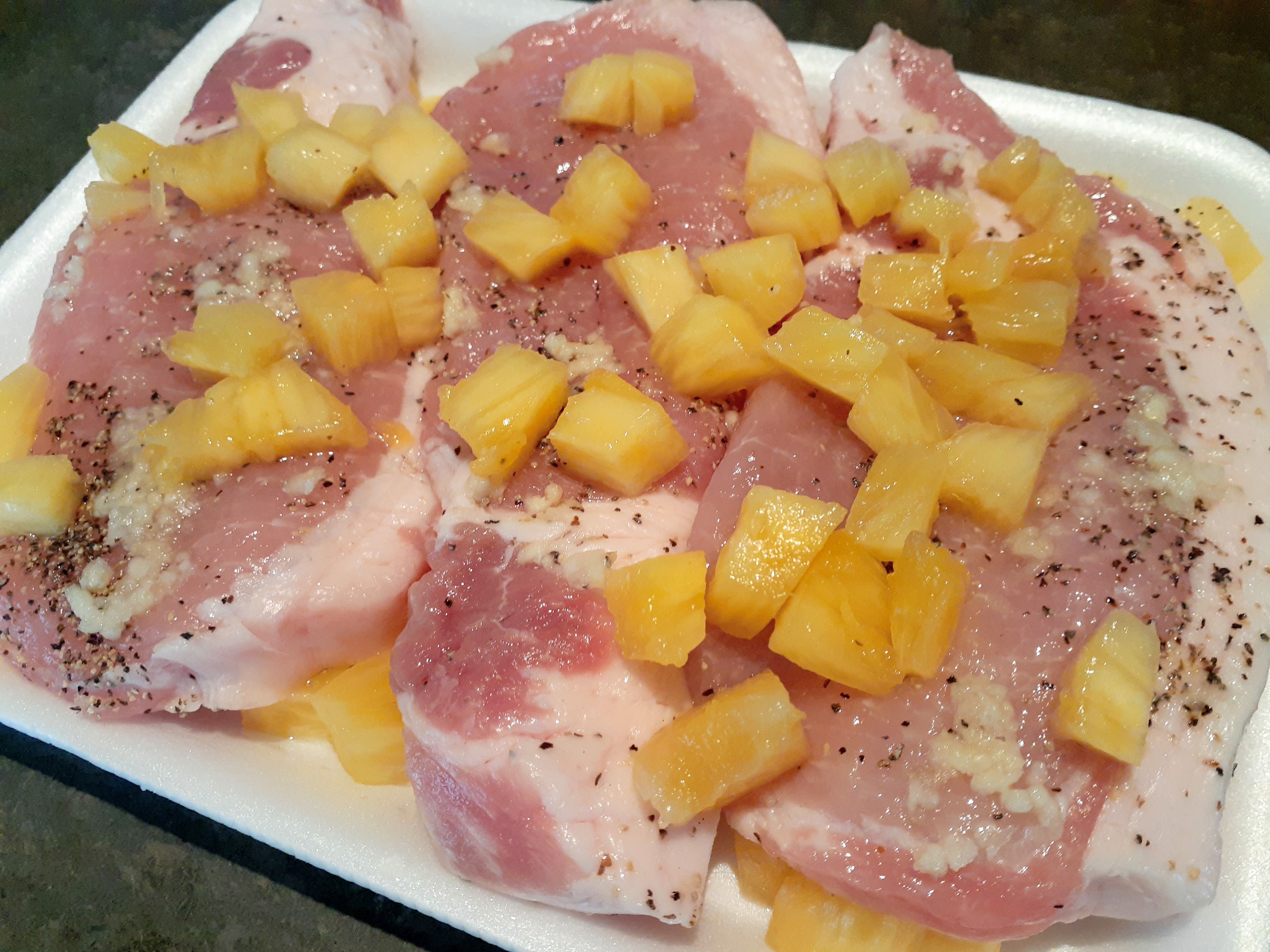 • Chop up the pineapple into small pieces and marinate the pork with them, rest them for 3 hours in the fridge.