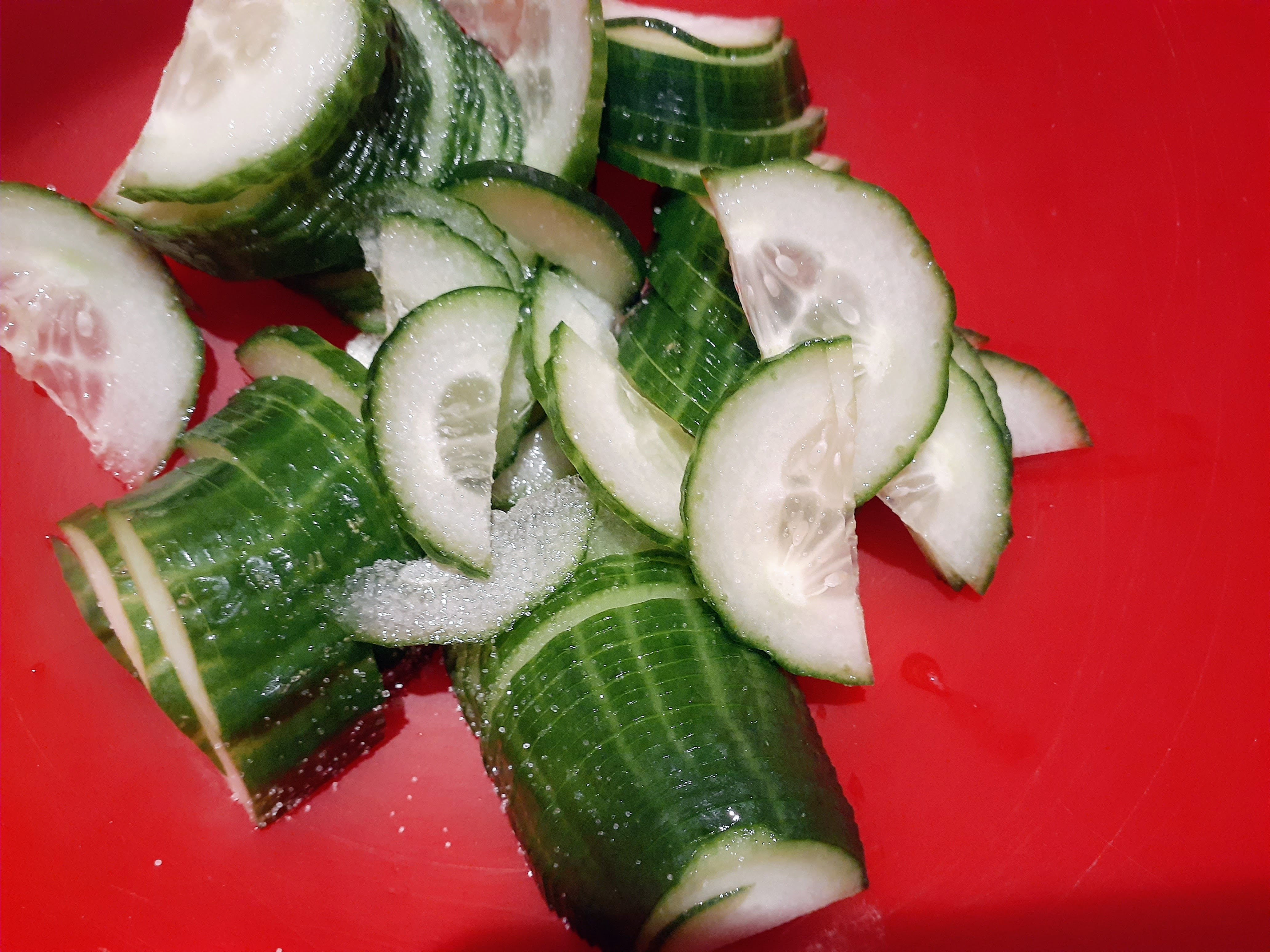 1. Thinly slice the cucumber and sprinkle it with salt, mix well by hand and rest for 10 minutes.